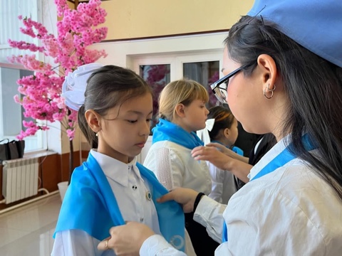 🇰🇿«Жас Ұлан» ұйымының қатарына барлығы 38 жас қырандар, 22 жас ұландар қабылданып, кеудесіне төсбелгілер тағылып галстуктер байланды. Мерекелік шашу ретінде А.Байтұрсынов атындағы бастауыш гимназияның кішкентай бүлдіршіні Манарбек Әділ «Атамекен» әнін асқақтата орындады.