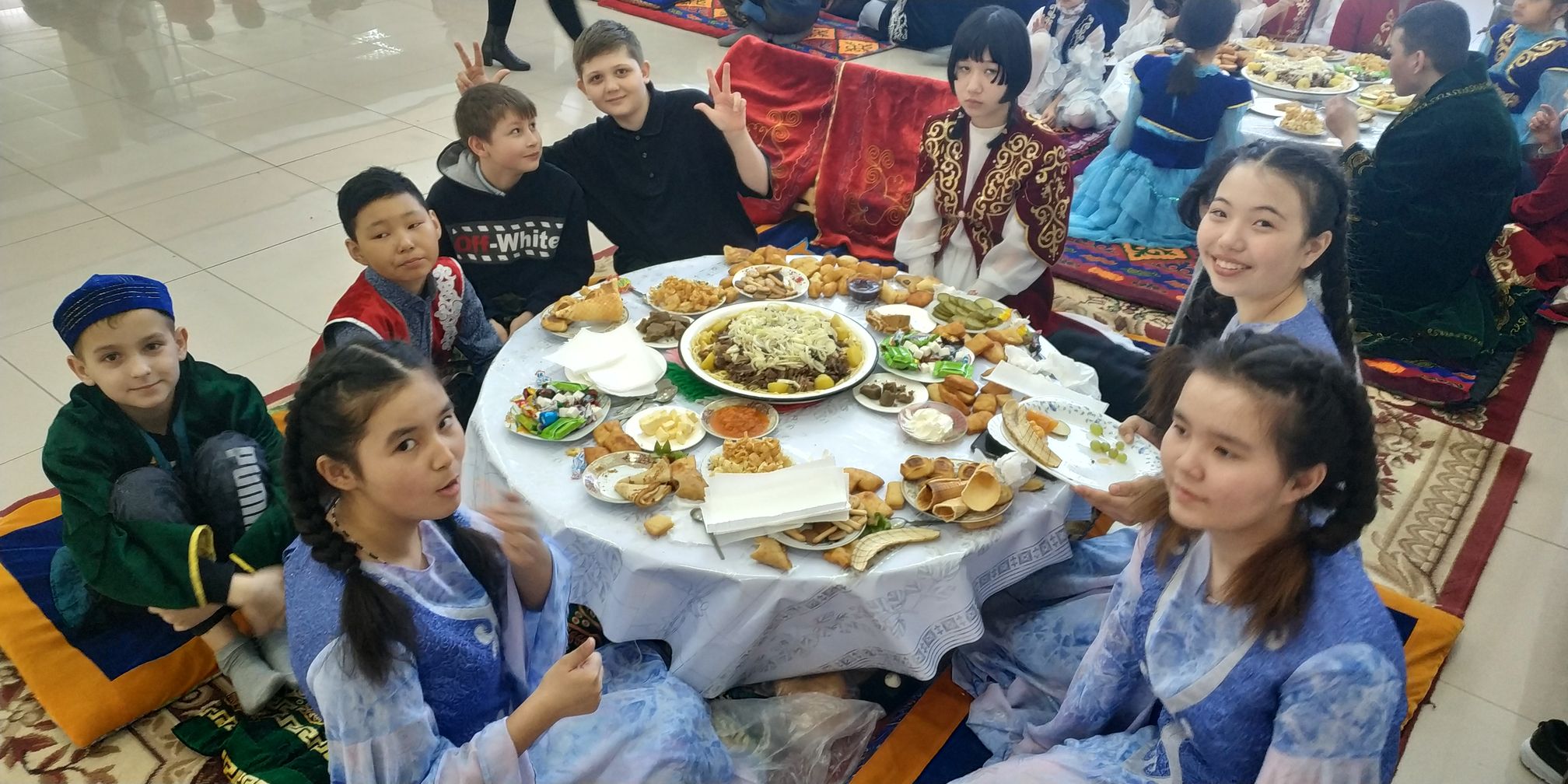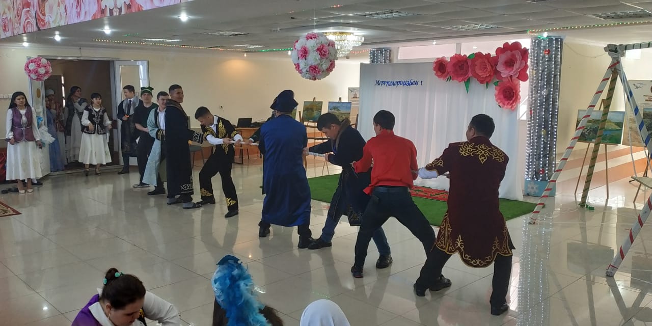 Содан кейін «Бесікке салар», «Тұсау кесер», «Сырға салу» сияқты қазақтың салт-дәстүрлері көрсетіліп, «Спорттық ойындар» ойналды.