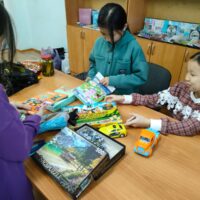 Посетили общежитие №12, где познакомились с детьми, играли в интересные игры «Контакт», «Глухой телефон», «Крокодил». Детям за участие в игре были розданы сладкие конфеты, книги, альбомы.