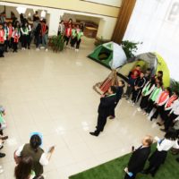 Про достижения воспитанников туристско-спортивного клуба «Эдельвейс» и про значимость реализуемого проекта «Ауылым – алтын бесігім», с экрана установленного недавно в ДЮЦ «Жас-Улан» LED экрана со свои видеообращением выступил директор регионального центра физической культуры и детско-юношеского туризма, управления образования Костанайской области Бимурзин Куаныш Уахитович.