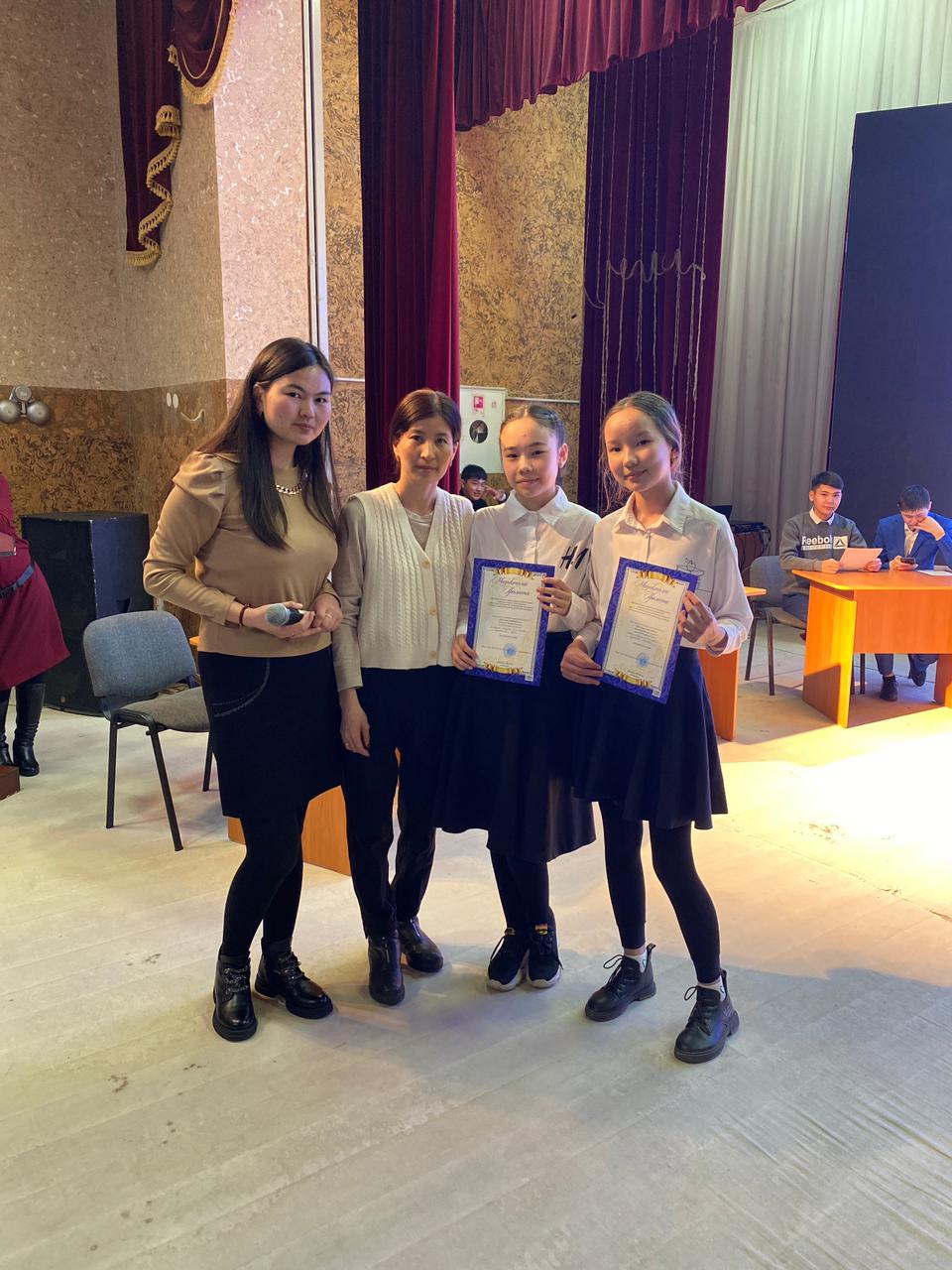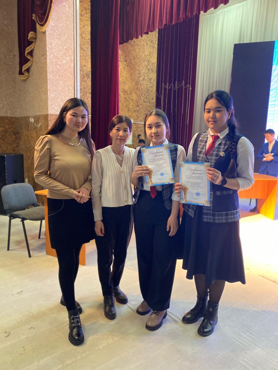 1 место-учащиеся гимназии имени И. Алтынсарина Иманғазы Мөлдір, Тлектес Айдана.